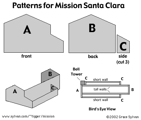 Note: The photos and information in Amy Margaret's Mission Santa Clara are great. Unfortunately the 'make your own mission' project at the end is not very accurate. The bell tower extends the entire length of the church, the lower side walls are missing, and the church is a square building, instead of rectangular. I'm sure you can design something better. I do not know if the mission projects in her other books are more accurate.