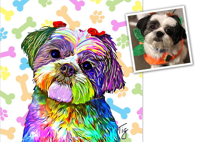 I will create an original painting of your furry, feathered, or scaley friend from your photos. I can make your art in the style of Van Gogh, Monet, colorful pop art, and more. I do the work digitally, and have it professionally printed for the best quality. You can get paper prints, canvases, tote bags, mugs, pet feeding mats and more.